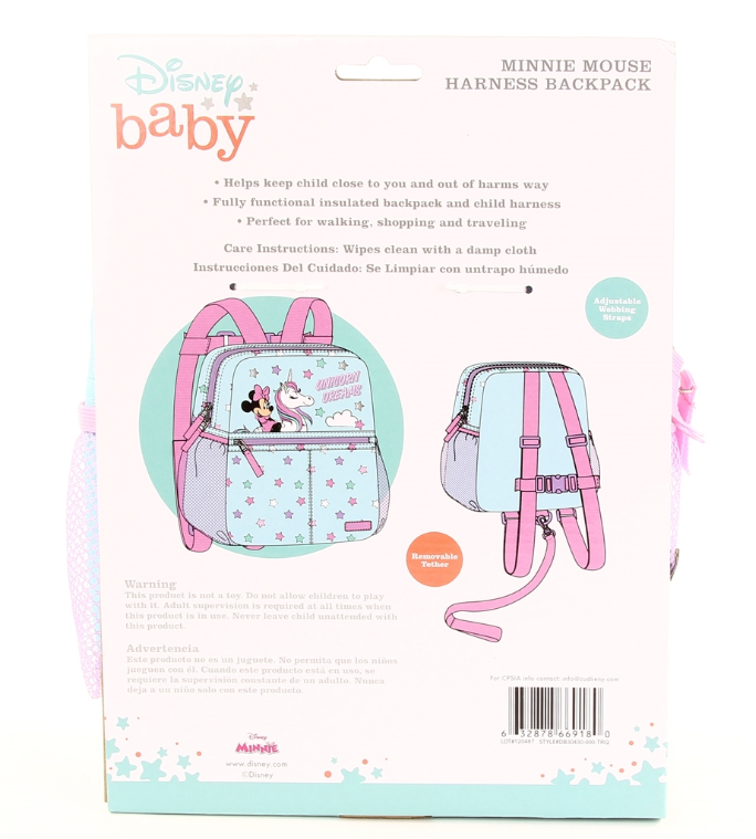 • Description: Minnie Mouse mini backpack with harness. Fully functional insulated backpack.
